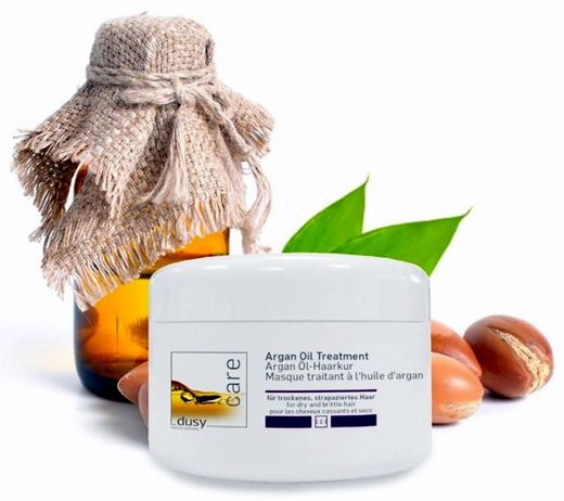 Suché vlasy potřebují občas dodatečnou, silnější péči. Vhodné jsou právě výživné vlasové masky. Maska se aplikuje většinou na mokré vlasy a nechává se působit delší dobu než kondicionér. Vlasové masky působí oproti kondicionérům více do hloubky a používají se jednou týdně, hlavně když máte vlasy poškozené, nebo jednou za 14 dnů až měsíc, pokud máte vlasy jemnější. Ideální maskou na poškozené vlasy je DUSY ARGAN OIL TREATMENT, 250 ml, bohatá kúra z arganového oleje pro hloubkovou regeneraci. Dodává vlasům pružnost, objem a hedvábný lesk. Arganový olej proniká přímo do vlasu a zvyšuje jeho pružnost, hydratuje, zjemňuje a zmírňuje svědění vlasové pokožky. Navíc si dokáže poradit i s roztřepenými konečky.